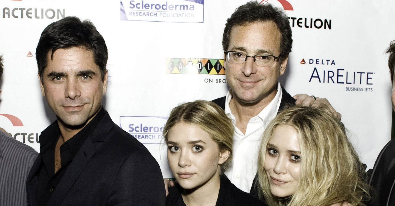 | John Stamos, Bob Saget, Mary-Kay and Ashley Olsen. Stamos is pissed that the Olsen twins declined the offer to return to television. They have declined to appear on the Full House reboot. |